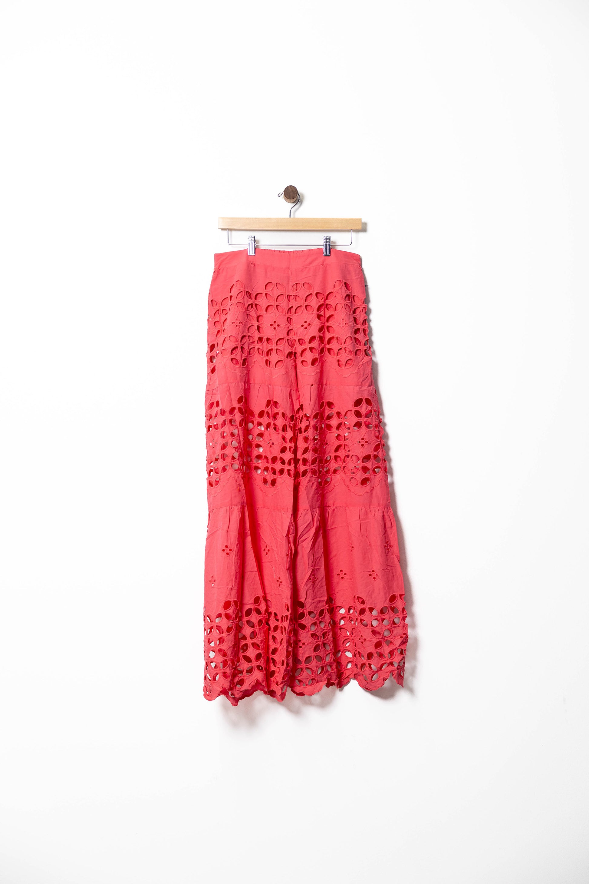 Breezy, romantic, and statement-making—these wide-leg pants feature allover embroidered eyelet detailing and a tiered silhouette for added flow. Lightweight and breathable, they’re perfect for warm days when you want to feel elegant and comfortable. Available in white, coral, and black. Style them with a matching top or a simple tank for an effortlessly chic look.